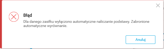 ·        Wyrównywany zasiłek musi mieć automatycznie wyliczoną podstawę.