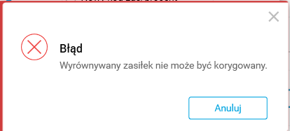 Rys. Komunikat o wykonanej już korekcie zasiłku