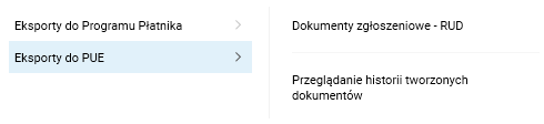 Rys. Nowa pozycja menu Eksporty do PUE