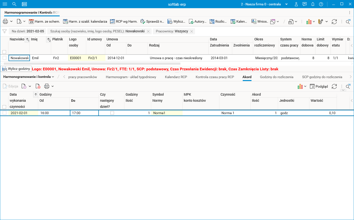 Funkcjonalność ma na celu umożliwienie jednoczesnego rozliczania pracy w akordzie oraz rozliczania pracy w module RCP, a także naliczenia wynagrodzenia za godziny pracy w akordzie, poza akordem i nadgodziny poza akordem – wyliczonego z odpowiednich stawek.