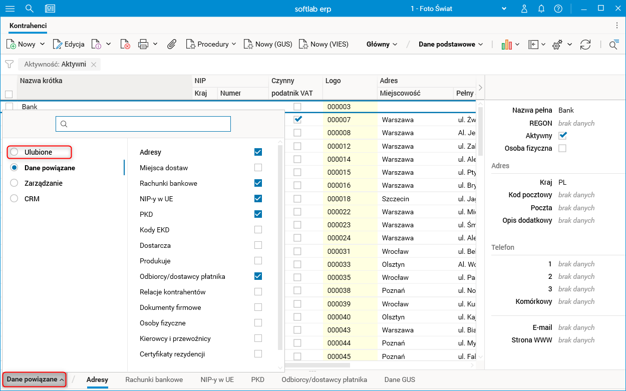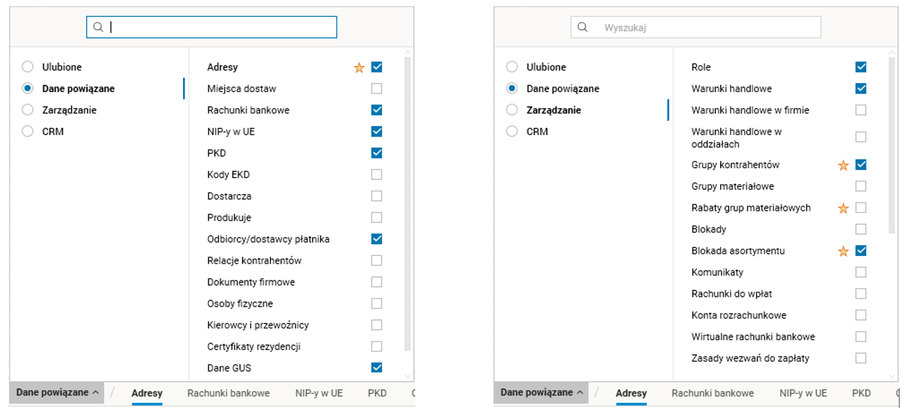 W menu szczegółów pojawiła się nowa grupa Ulubione. Jej zawartość może być definiowana przez użytkownika: to on decyduje, jakie szczegóły się w niej znajdą.