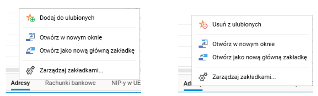 Rys. Menu kontekstowe widocznej zakładki z opcją dodaj/usuń