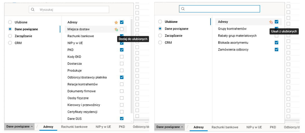 Ulubiony szczegół można dodać lub usunąć zarówno w menu szczegółów, jak również z poziomu menu kontekstowego widocznych szczegółów.