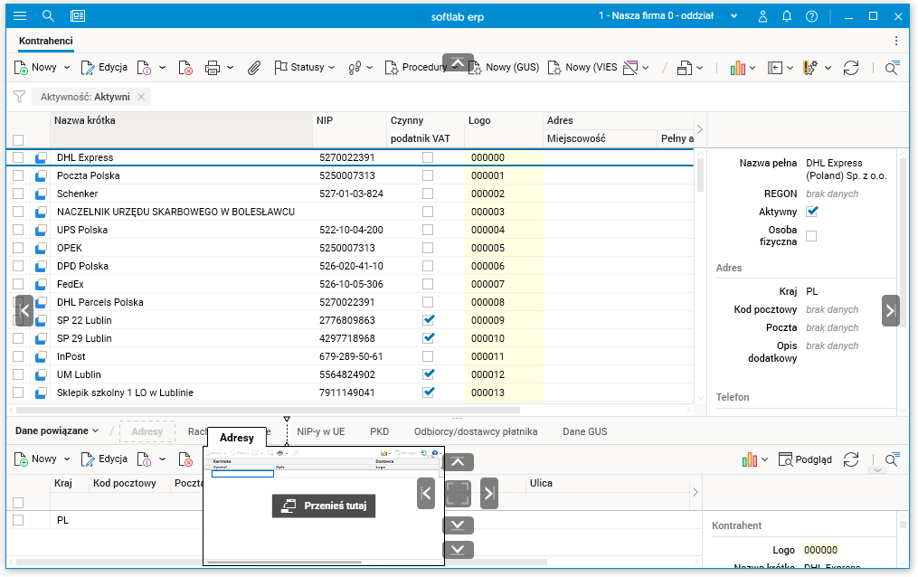 Rys. Możliwość przeniesienia szczegółu na pasku zakładek szczegółów