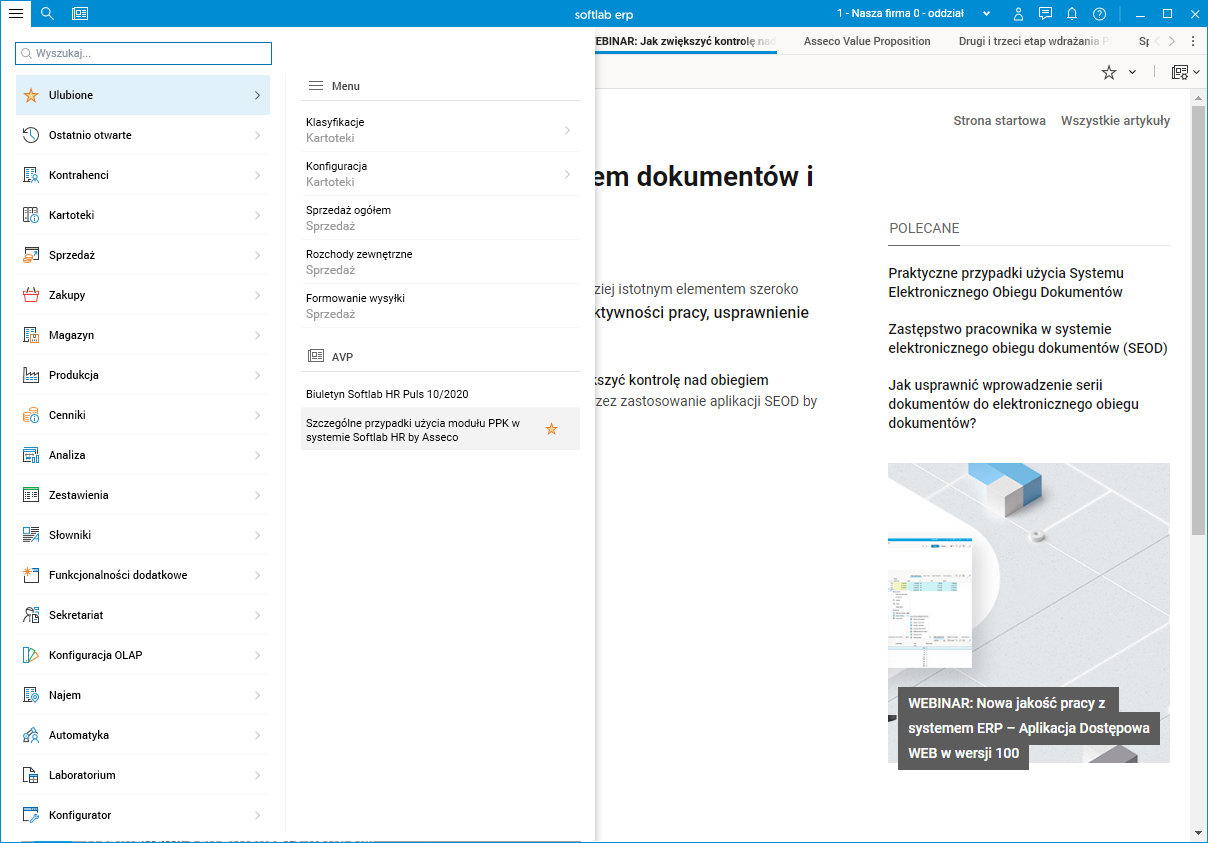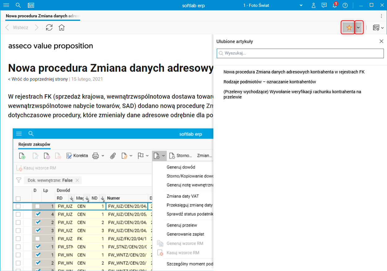 Ulubione artykuły będą wyświetlane w menu głównym. Polubiony artykuł można w menu Ulubione usunąć z ulubionych, wystarczy odznaczyć gwiazdkę, która pojawia się, gdy umieścimy kursor myszy na polubionym artykule.