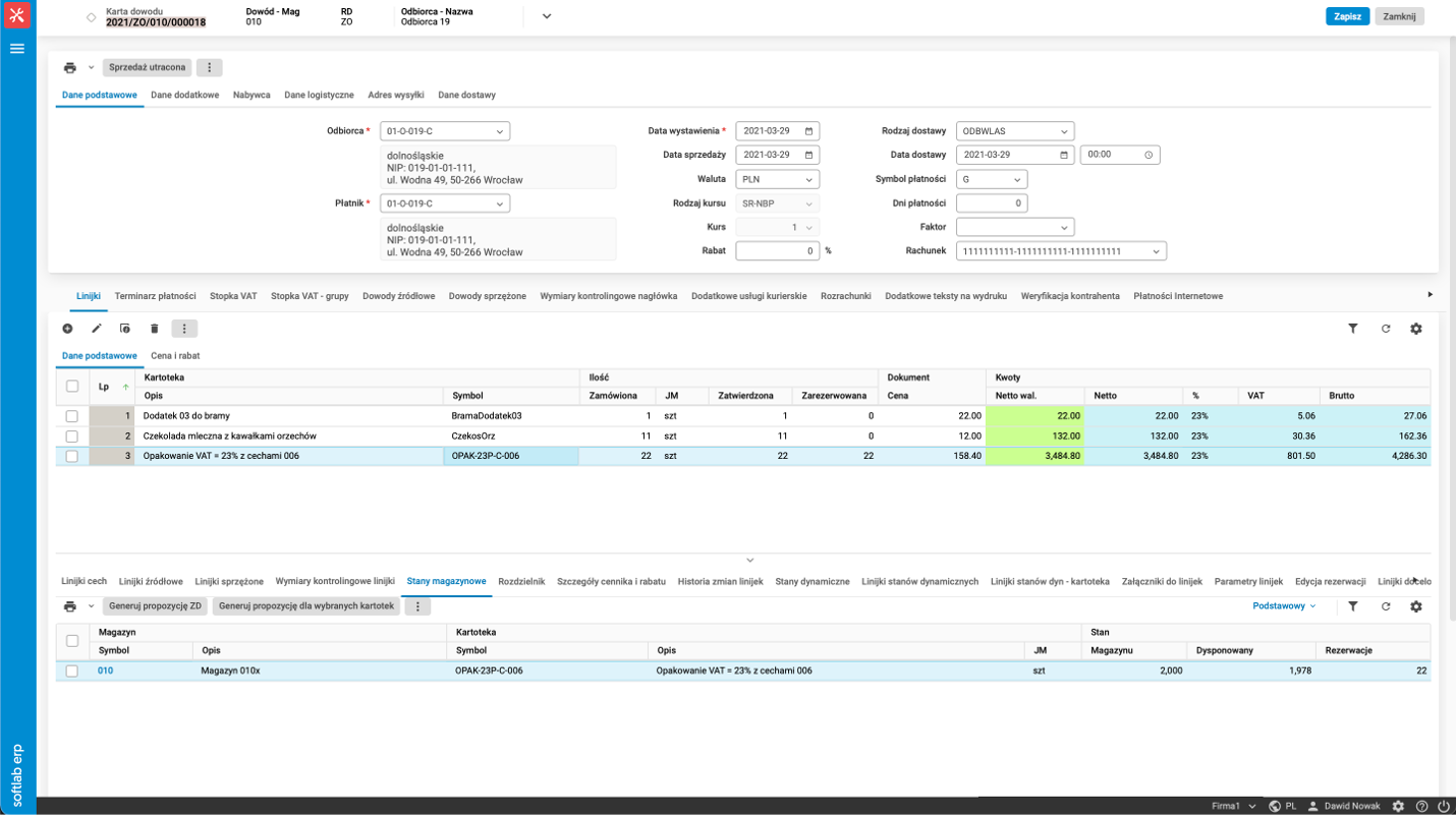 Obsługa modułu Sprzedaż i Logistyka