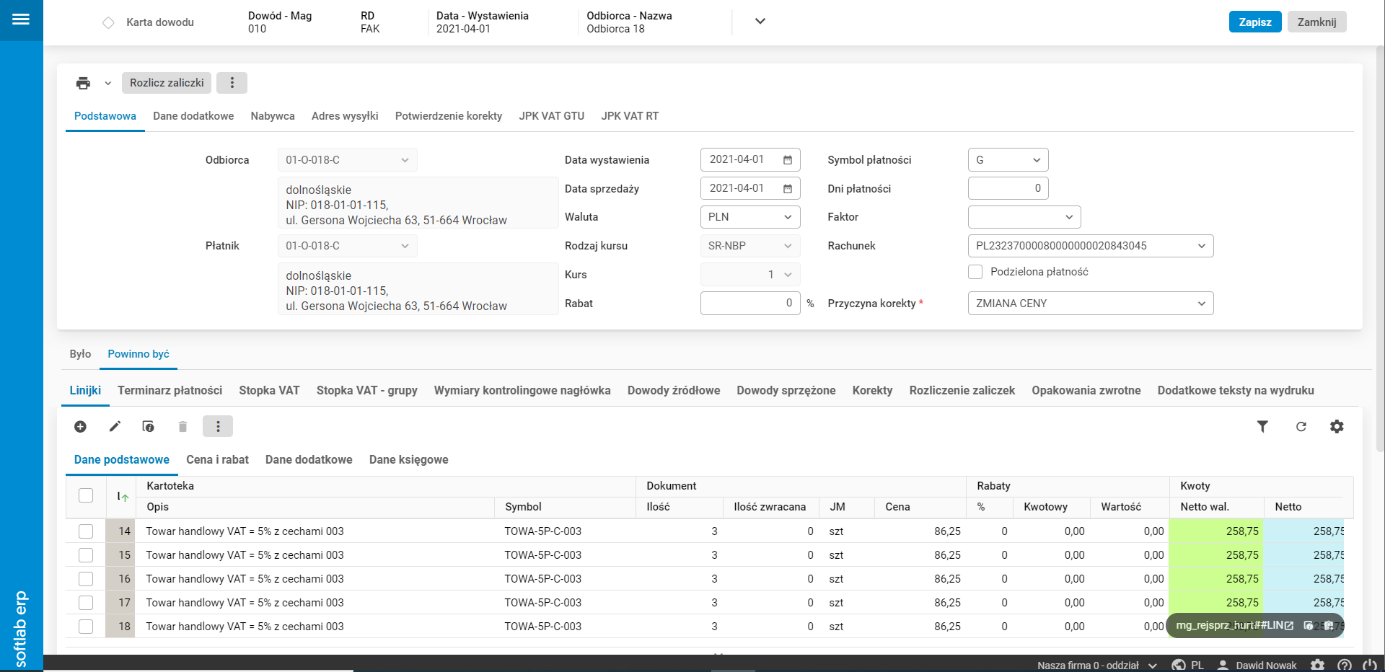 ·        Wystawianie i edycja korekt do dokumentów sprzedaży.