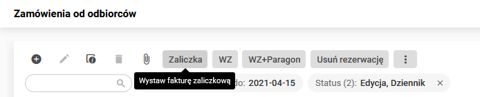 Rys. Procedura Wystaw fakturę zaliczkową dodana do paska akcji