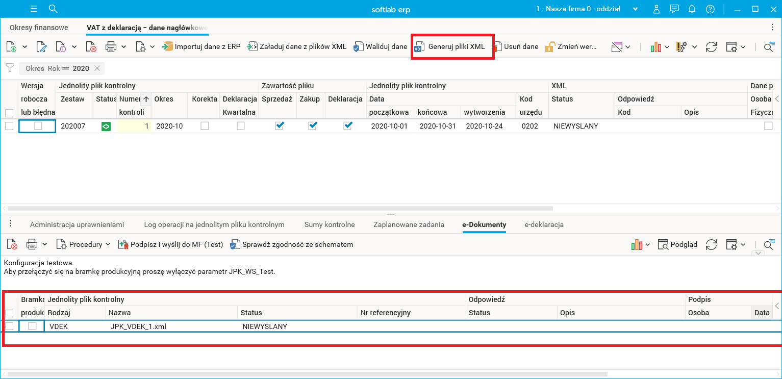 Rys. Jednolity plik kontrolny, po wykonaniu procedury Generuj pliki XML