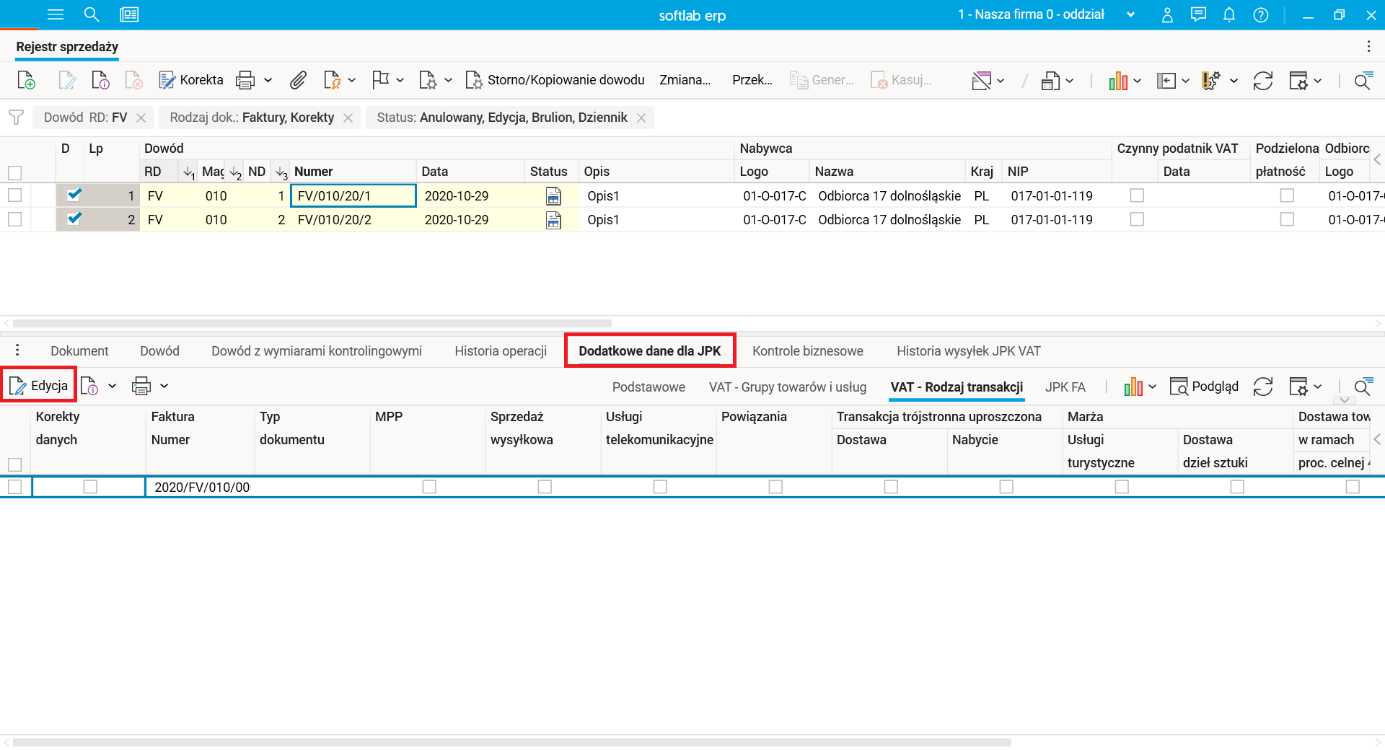 Rys. Szczegół Dodatkowe dane dla JPK z opcją edycji