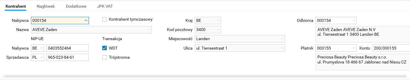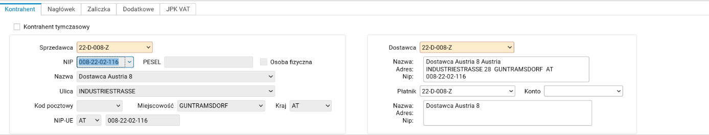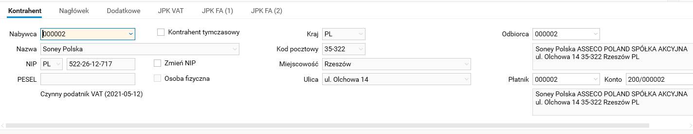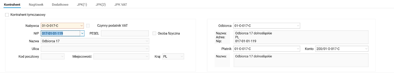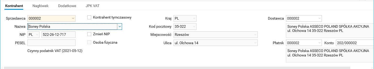 ·        Wyświetlania danych nabywcy/sprzedawcy, odbiorcy/dostawcy i płatnika.