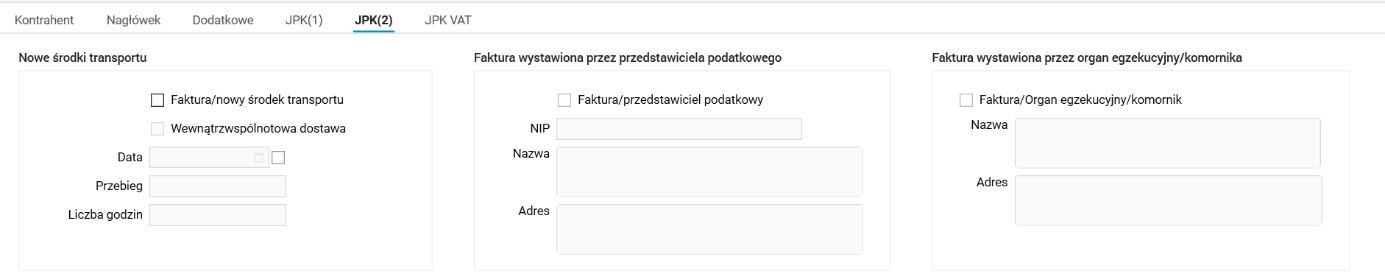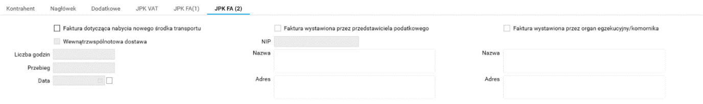 ·        JPK FA (2) – zakładka zawiera informacje wykazywane w pliku JPK FA – część 2.