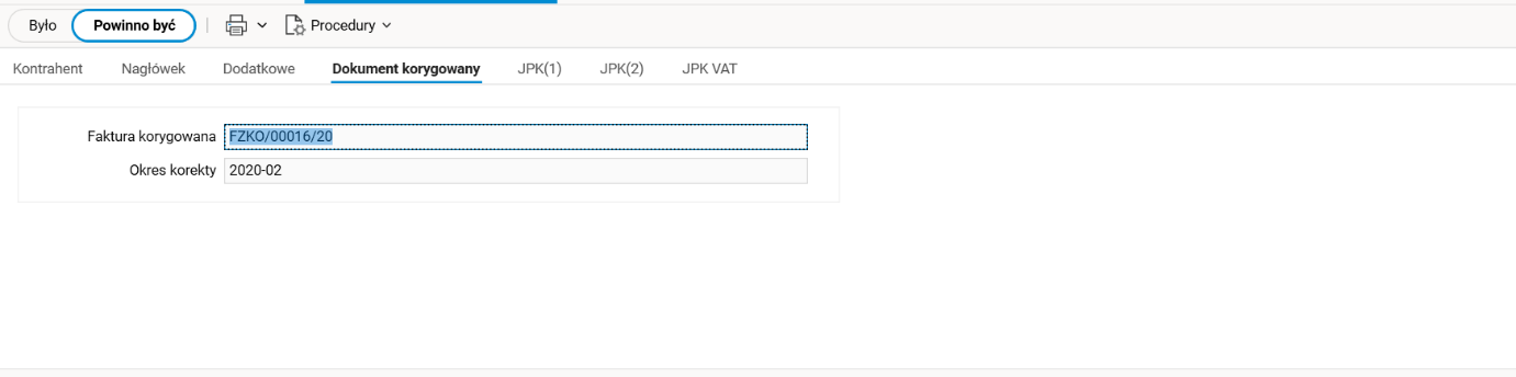 Rys. Zakładka Dokument korygowany – przed zmianami