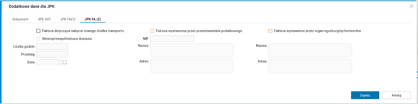 Rys. Dane dodatkowe dla JPK – zakładka JPK FA (2)