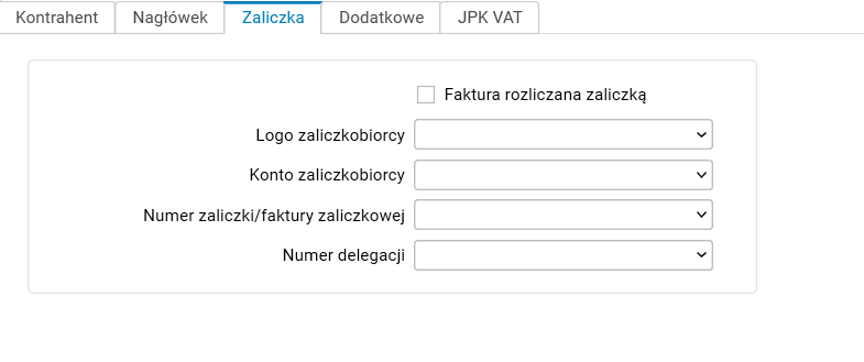 Zakładki JPK FA (1) i JPK FA (2) są widoczne tylko w przypadku odpowiedniej konfiguracji.
