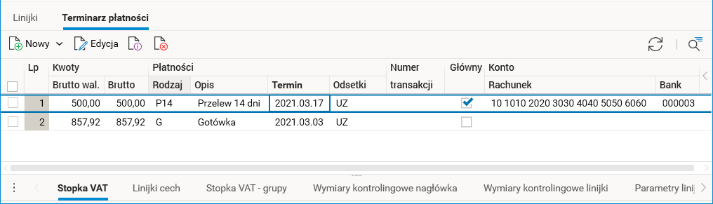 Rys. Terminarz płatności