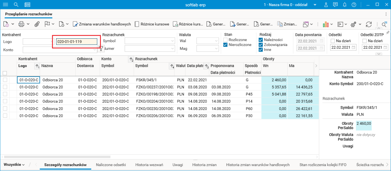 Ułatwienie wyszukiwania rozrachunków kontrahenta w słowniku Przeglądanie rozrachunków
