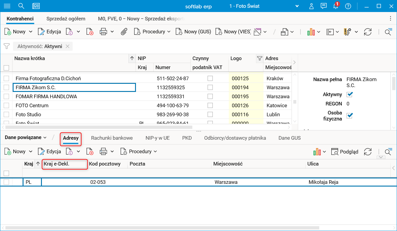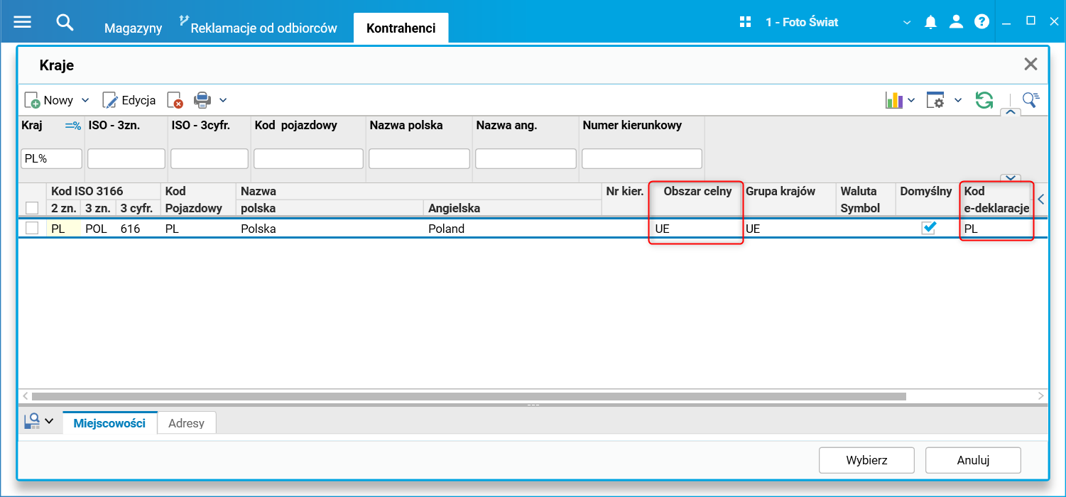 Rys. Słownik Kontrahenci, szczegół Adresy, kolumna Kraj e-Dekl.