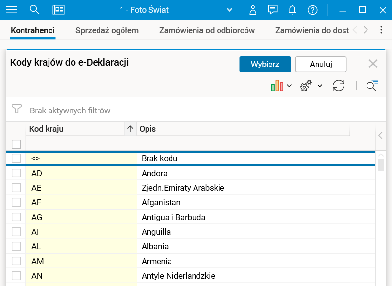 Część danych przechowywanych do tej pory w słowniku Kraje przeniesiono do dwóch nowych słowników: