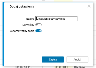 Podczas dodawania ustawień użytkownika oraz zarządzania ustawieniami można włączyć lub wyłączyć parametr Automatyczny zapis. Przy dodawaniu nowych ustawień jest on domyślnie włączony.