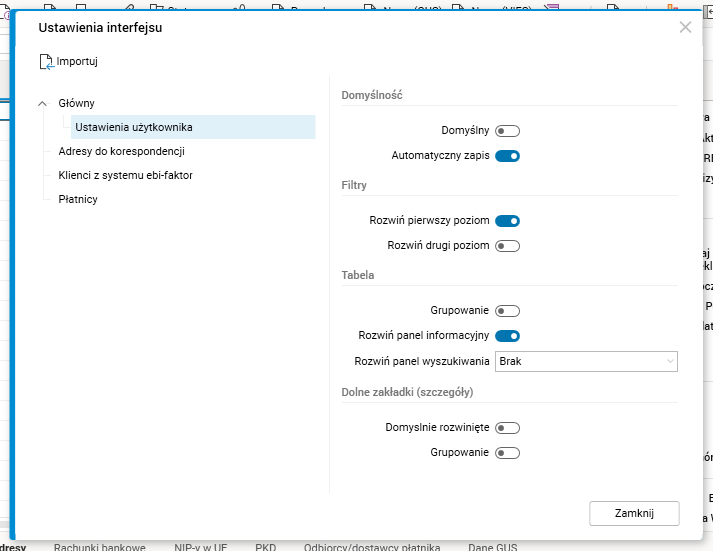 Rys. Okno Ustawienia interfejsu z widocznym parametrem Automatyczny zapis