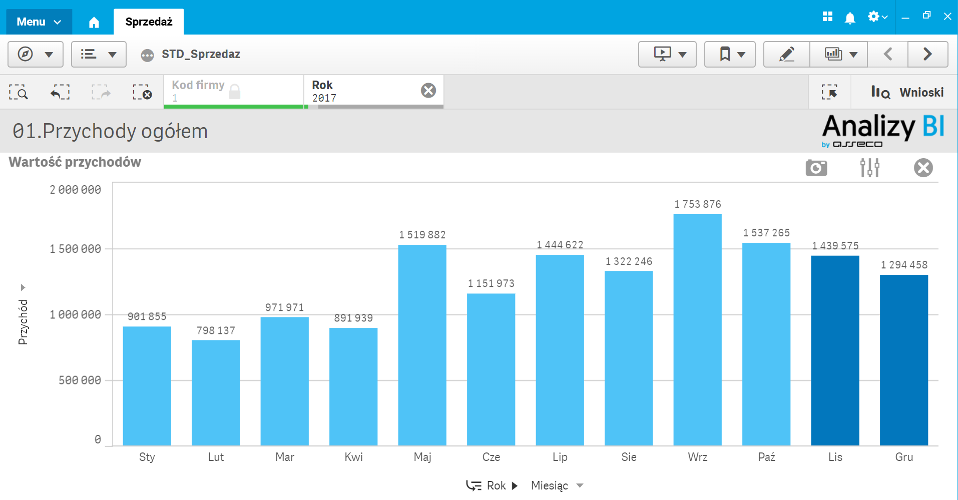 Rys. 3. Selekcja roku 2017 w wizualizacji Wartość przychodów