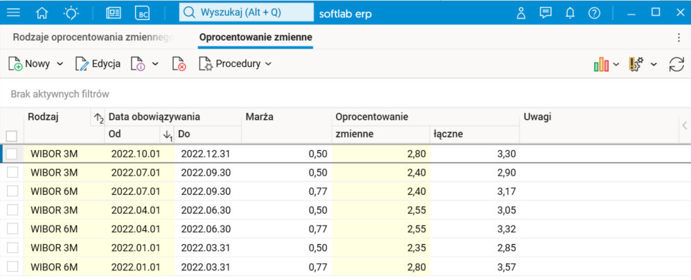 W systemie Softlab HR wprowadzono obsługę pożyczek ze zmiennym oprocentowaniem. Rozwiązanie to umożliwia zmianę oprocentowania pożyczki w trakcie jej trwania.
