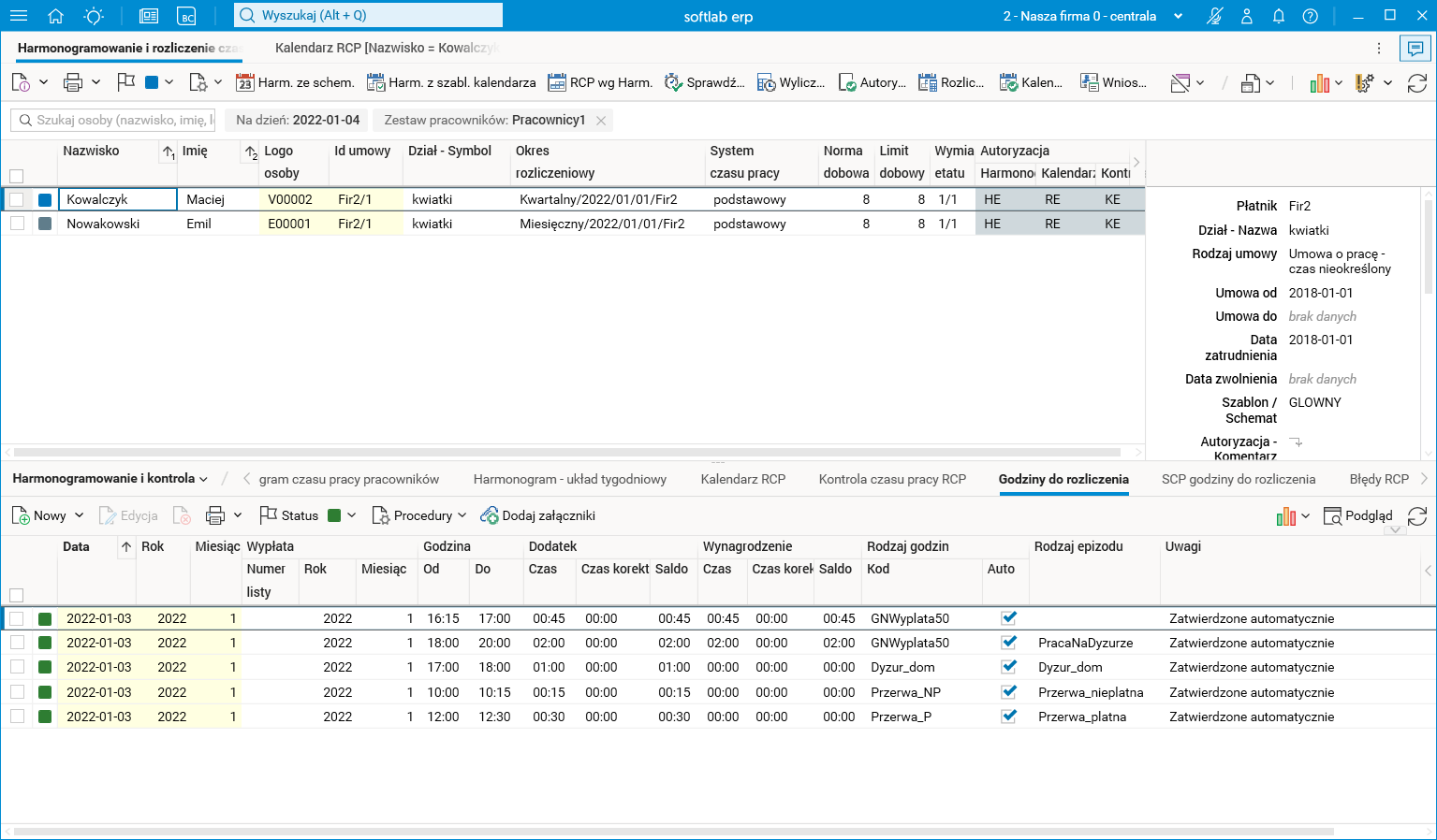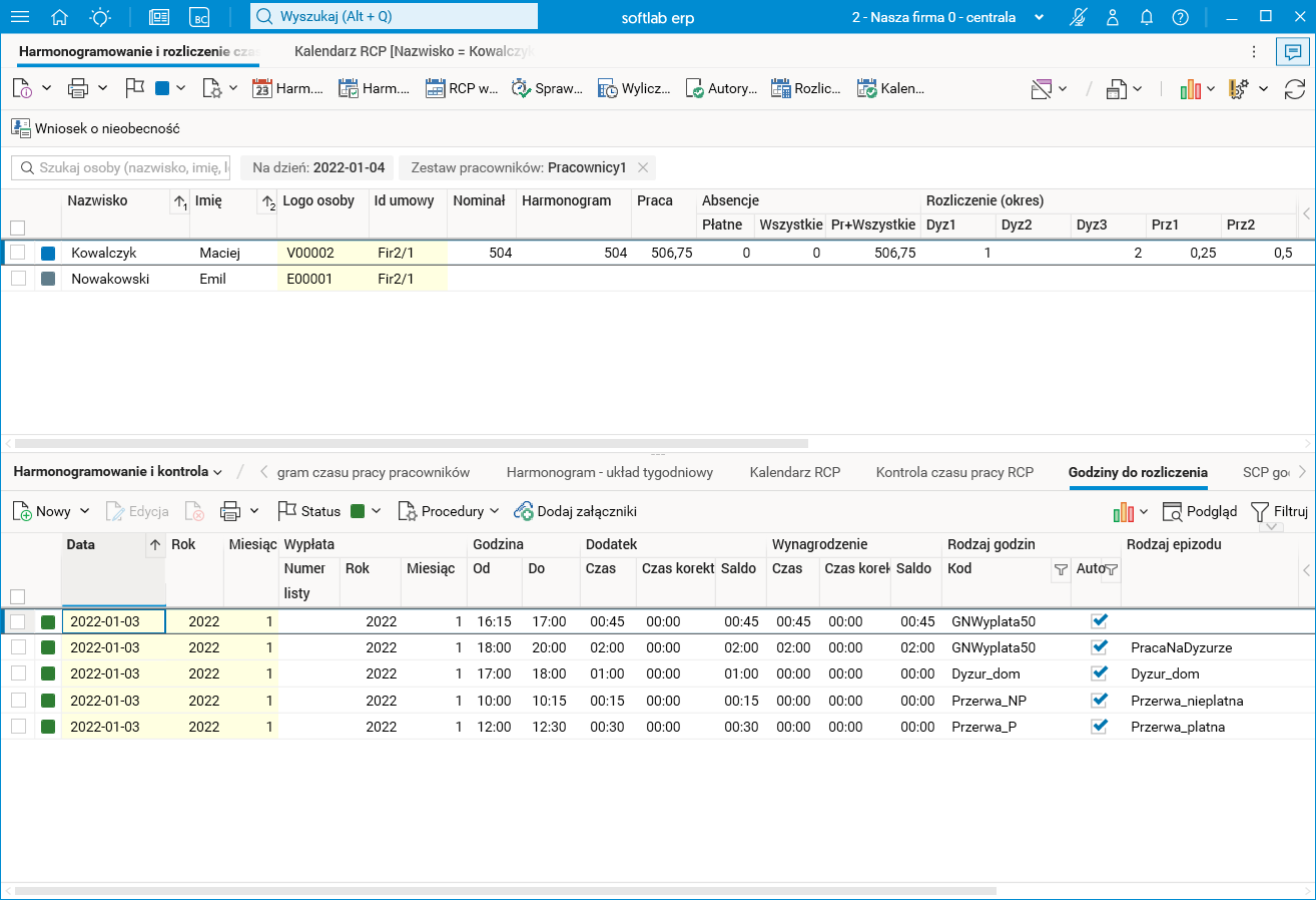 Uwzględniono epizody skonfigurowane jako „nie praca” w nowej wersji wyliczania nadgodzin, uwzględniającej dokładnie przerwy w harmonogramie i rzeczywistym czasie pracy (funkcjonalność opisana w niniejszej karcie zmian: (RCP) Nowy sposób wyliczania nadgodzin).