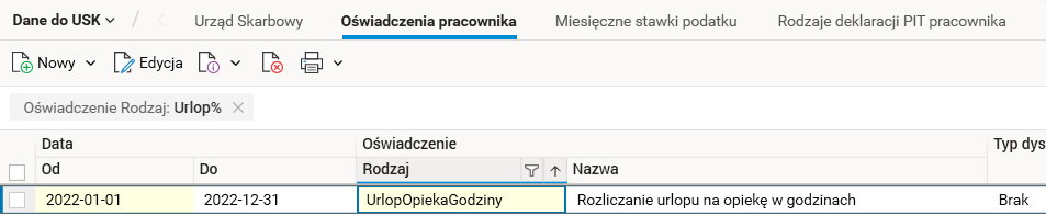 W dostępnym w portalu HR wniosku urlopowym dotyczącym opieki nad dzieckiem, na podstawie art. 188 Kodeksu pracy umożliwiono złożenie oświadczenia dotyczącego sposobu wykorzystania w danym roku kalendarzowym uprawnienia rodzicielskiego w formie zwolnienia z pracy w celu opieki nad dzieckiem.