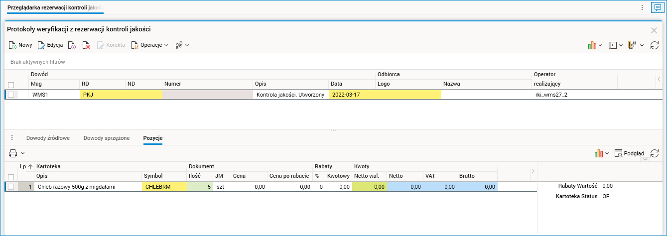 Wykonanie tej procedury powoduje wystawienie dokumentu PKJ, czyli protokołu kontroli jakości.