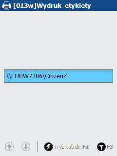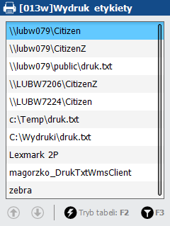 W przypadku, gdy żadna drukarka nie zostanie przypisana do magazynu, wówczas na terminalu radiowym zostaną wyświetlone wszystkie drukarki zdefiniowane w systemie.