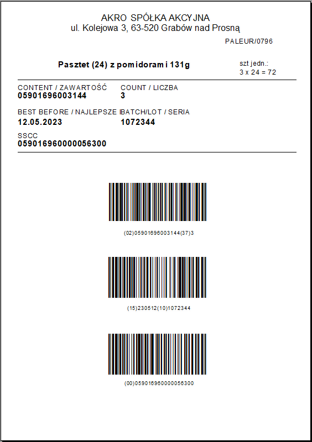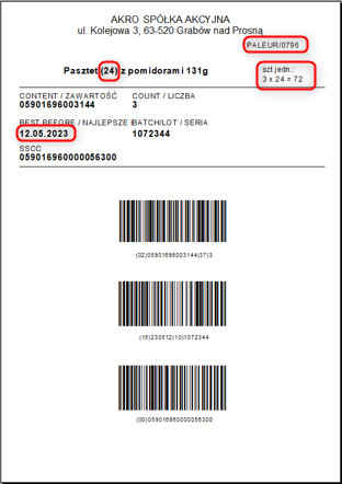 Rys. Etykieta GS1 dla nośnika po zmianach.