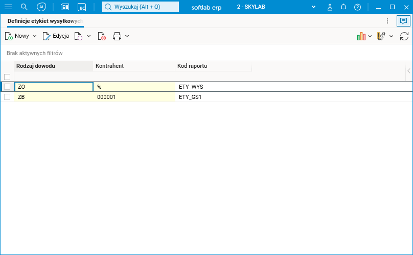 W zależności od tego, dla jakiego kontrahenta lub dokumentu wydania jest drukowana etykieta, można zróżnicować rodzaj etykiety wysyłkowej. Aby tego dokonać, należy w słowniku Definicje etykiet wysyłkowych ustawić typ etykiety drukowanej dla kontrahentów i rodzajów dowodów.