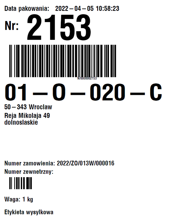 Rys. Etykieta zastępcza identyfikująca zamówienie