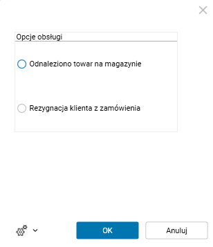 W module WMS zostało zmienione działanie procedury do obsługi braków na dokumencie ZO (zamówienia od odbiorców): jeśli zamówienie jest jednosztukowe (zawiera towar w ilości 1), to procedura udostępnia opcje wyboru dostosowane do takiego rodzaju zamówienia.