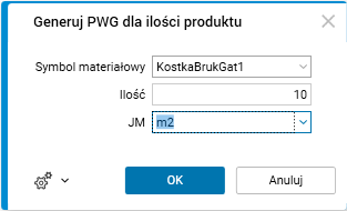 Rys. Parametry procedury Generuj PWG dla ilości produktu