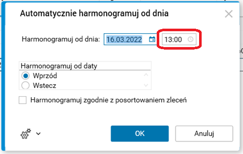 Następnie należy zaharmonogramować powstałe ZPS używając jednej z dostępnych procedur, np. Automatyczne harmonogramowanie produkcji do zlecenia . Operacja ta jest potrzebna do przyjęcia ilościowego produktu na panelu dotykowym.