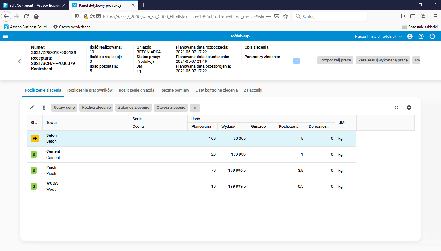 Rys. Zlecenie produkcji, szczegół Rozliczenie zlecenia