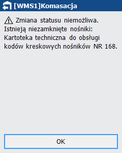 W przypadku próby zamknięcia dokumentu, dla którego istnieje niezamknięty nośnik, otrzymamy następujący komunikat: