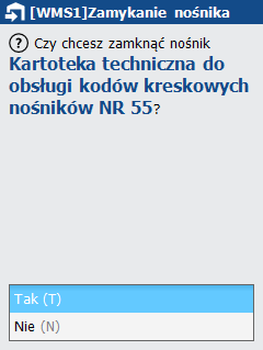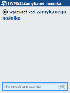Po wejściu do tego procesu wprowadzamy kod kreskowy nośnika, który chcemy zamknąć. Po zatwierdzeniu wyboru nośnik zostanie zamknięty.