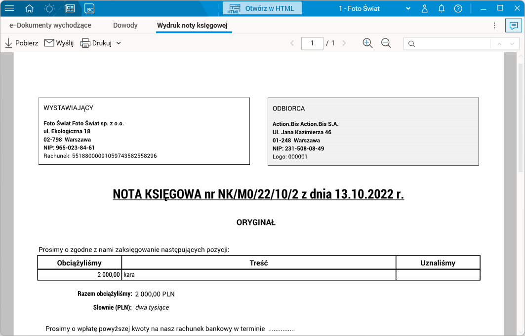 Po uruchomieniu procedury Generuj e-dokument (podgląd) generowany jest podgląd wydruku wybranego dowodu.