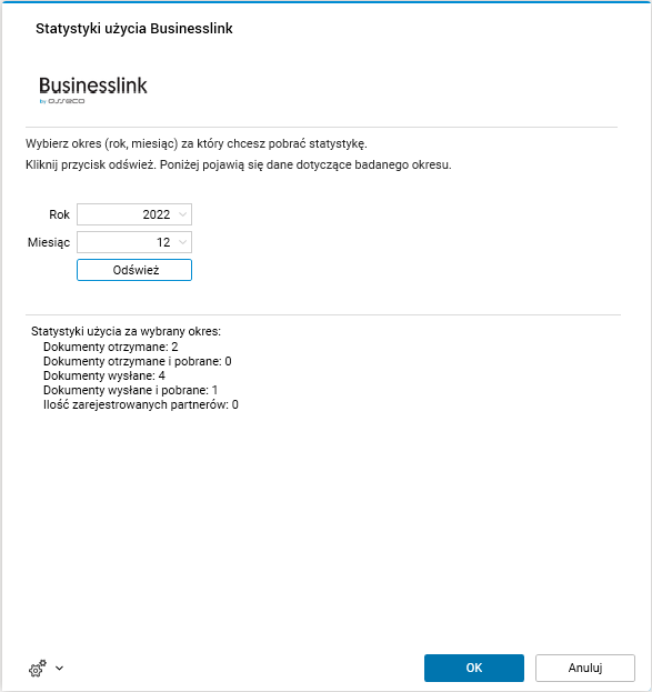 Rys. Okno prezentujące statystyki użycia Businesslink