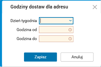 Rys. Okno edycyjne szczegółu Godziny dostaw dla adresu