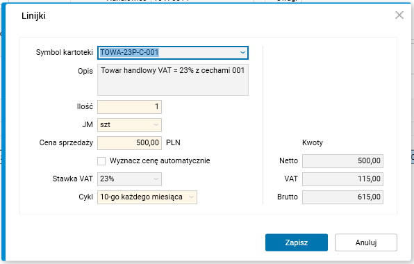 Dodano formularz edycyjny pozycji umowy cyklicznej.