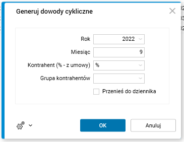Dostosowano wygląd formularza procedury Generuj dowody cykliczne. Wyrównano kontrolki, uzupełniono opisy i podpowiedzi pól.