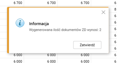 Po wygenerowaniu dokumentów zostanie wyświetlony komunikat z informacją o ilości wygenerowanych dokumentów ZD.