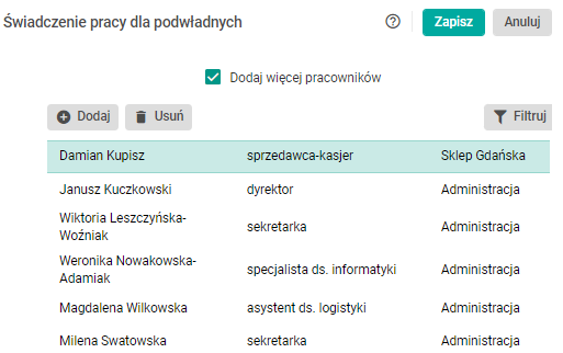 Rys. Okno dla pola wyboru Dodaj więcej pracowników z listą pracowników