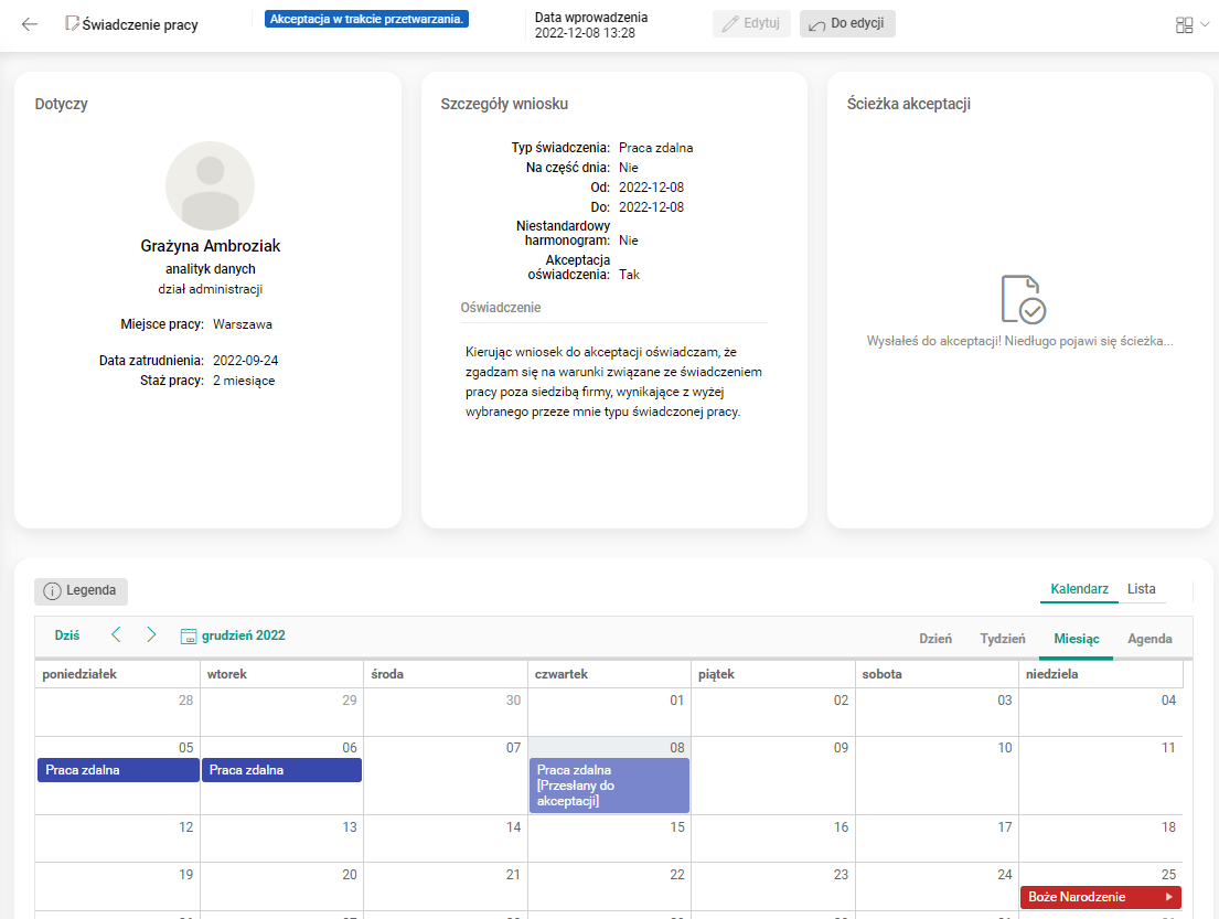 W Portalu HR i SEOD uproszczona została treść statusu na ścieżce akceptacji oraz w nagłówku wszystkich wniosków i dokumentów.