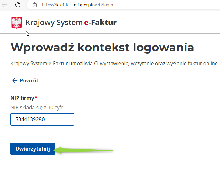 Ministerstwo Finansów udostępniło portal testowy. Można się do niego zalogować na tej stronie, podając NIP (nie musi być prawdziwy).