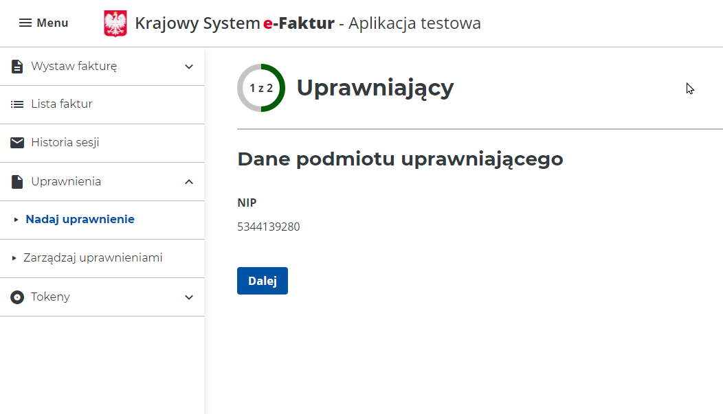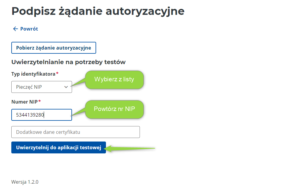 Rys. 4. Autoryzacja logowania do portalu KSeF w wersji testowej
